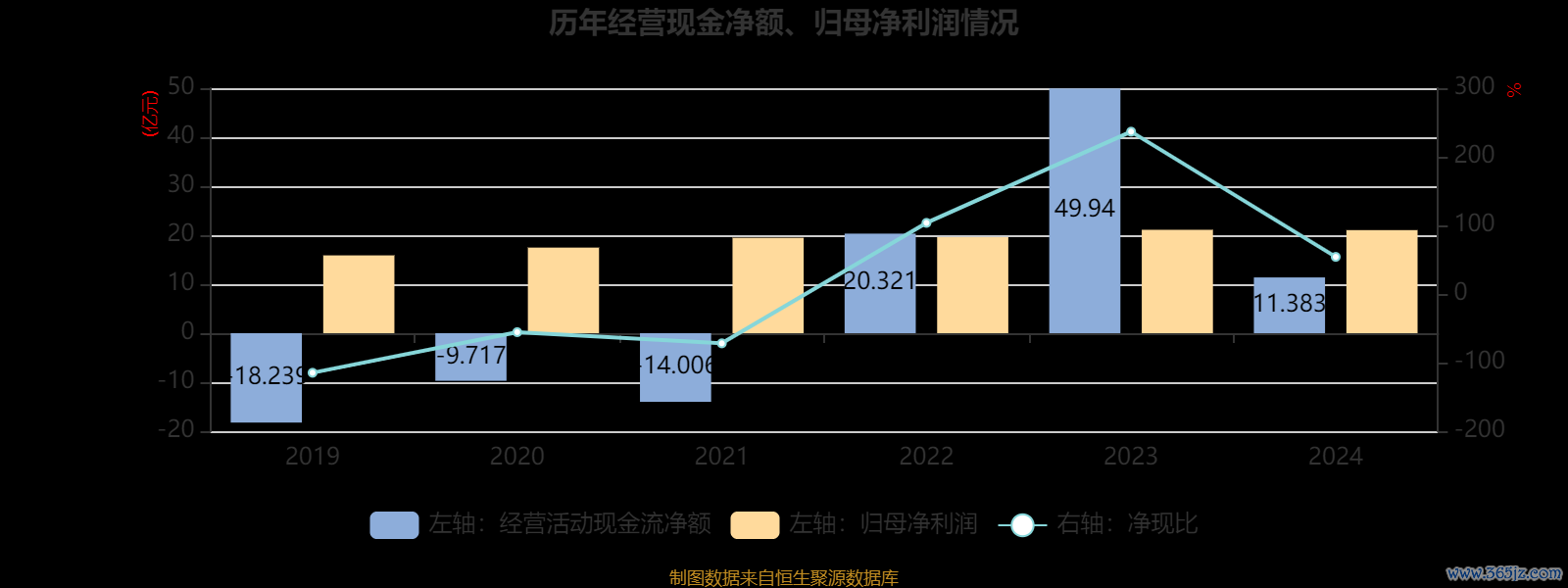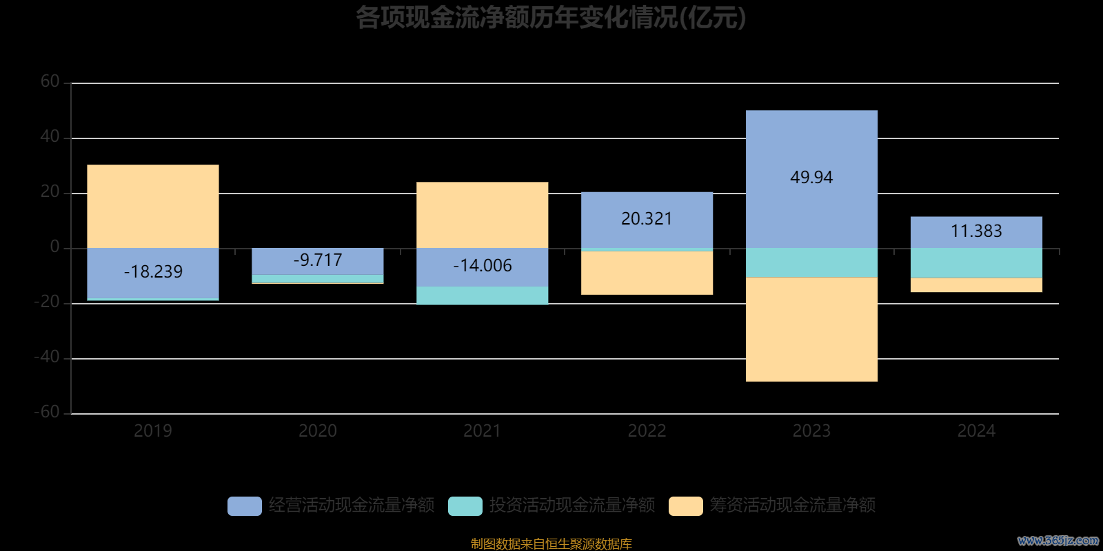 2024年,公司经营活动现金流净额为11.38亿元,同比下降77.21%;筹资活动现金流净额-5.21亿元,同比增加32.73亿元;投资活动现金流净额-10.85亿元,上年同期为-10.59亿元。